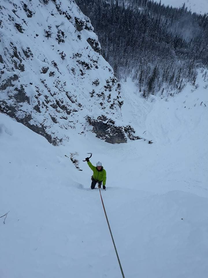 Glede na napoved sva zgodnja.Še v temi prideva do koče v Tamarju, nato pa naprej pod slapiče. Edini obetaven se zdi Centralni slap, pa se ga polotiva. Nisva prva in slediva predhodnikom, ki so vsaj deloma očistili sneg na poti navzgor. V dveh raztežajih sva na vrhu.