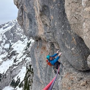 Z Žigom Oražmom sva 13.4. opravila drugo in tretjo prosto ponovitev Nirvane (250m, VIII+/IX-) v Koglu.